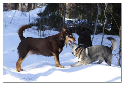 Söndag och måndag kom matte med en del för att tagga upp Ebba lite och det verkar lovande. Helt enkelt backa lite, mycket kamp och glädje och väldigt smaskig korv :)