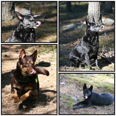 så då har familjen varit till klubben och tränat idag. Jag har kört enkla korta repetitioner sedan tävlingen. Ebba har känts lite ointresserad så jag har backat och vi har bara tränat på tisdagar. Det verkar fungera och hon är klart mera alert de gånger vi är uppe. Får inte glömma att hon fortfarande är ung och dessutom lite sen/valpig till sättet. Möjligen för att hon fått vara valp länge med både mamma och "mormor Sally" i huset.