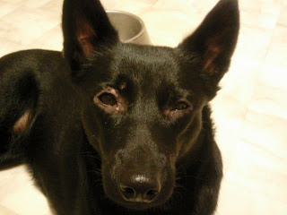lider av skabben hon fått. Veterinären har ordinerat Stronghold men aviserat att det kan bli sämre innan det blir bättre. Stackarn kliar sig kontinuerligt och skrapar bort päls runt ögonen och hakan. Vi får väl hoppas det släpper snart.
