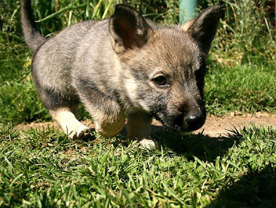 Ebba har nog slagit något slags rekord men nu har hon ätligen börjat löpa, det tog bara knappa 14 månader...Hon har varit osedvanligt puckad och lättskrämd de sista dagarna så det har klart kännts att något varit på gång. Tyvärr betyder nog detta att hon inte kan göra MH-testet den 9 maj som vi hoppats men vi får se fram emot att träffa de flesta av hennes syskon!