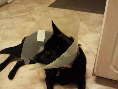 Ebba lider av att inte kunna busa ordentligt med Troja, vi försöker hålla henne lite lugn men som alla kelpieägare vet är det inte helt lätt...