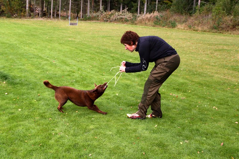 Vi har kört fritt följ och jobbar med att det ska vara roligt med apport, dvs testar lite konkurrensjagande efter apporten och det verkar fungera.